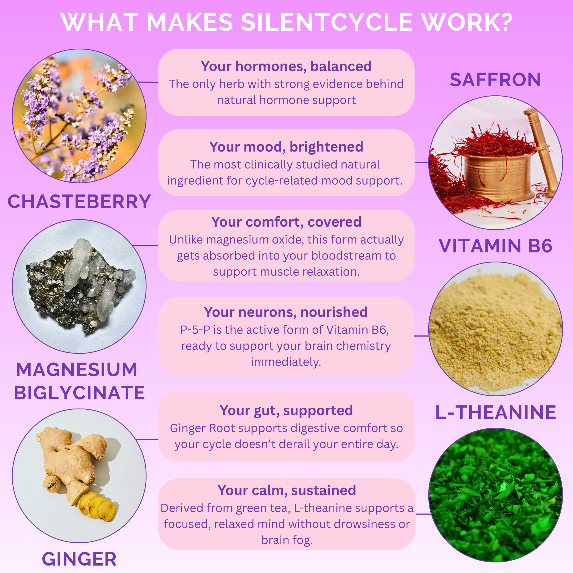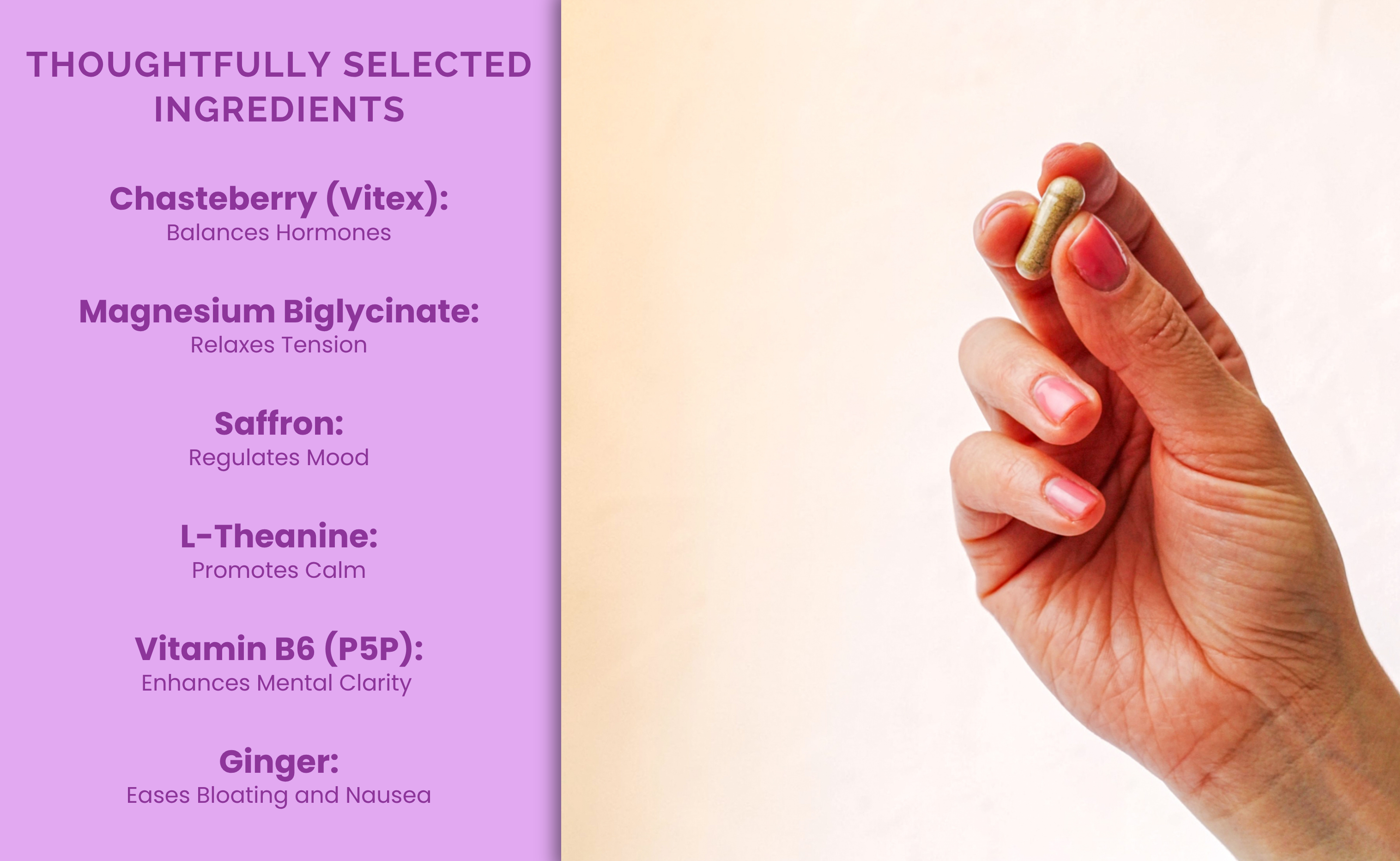 Saffron has real human clinical trials showing effective mood balance support during the cycle.